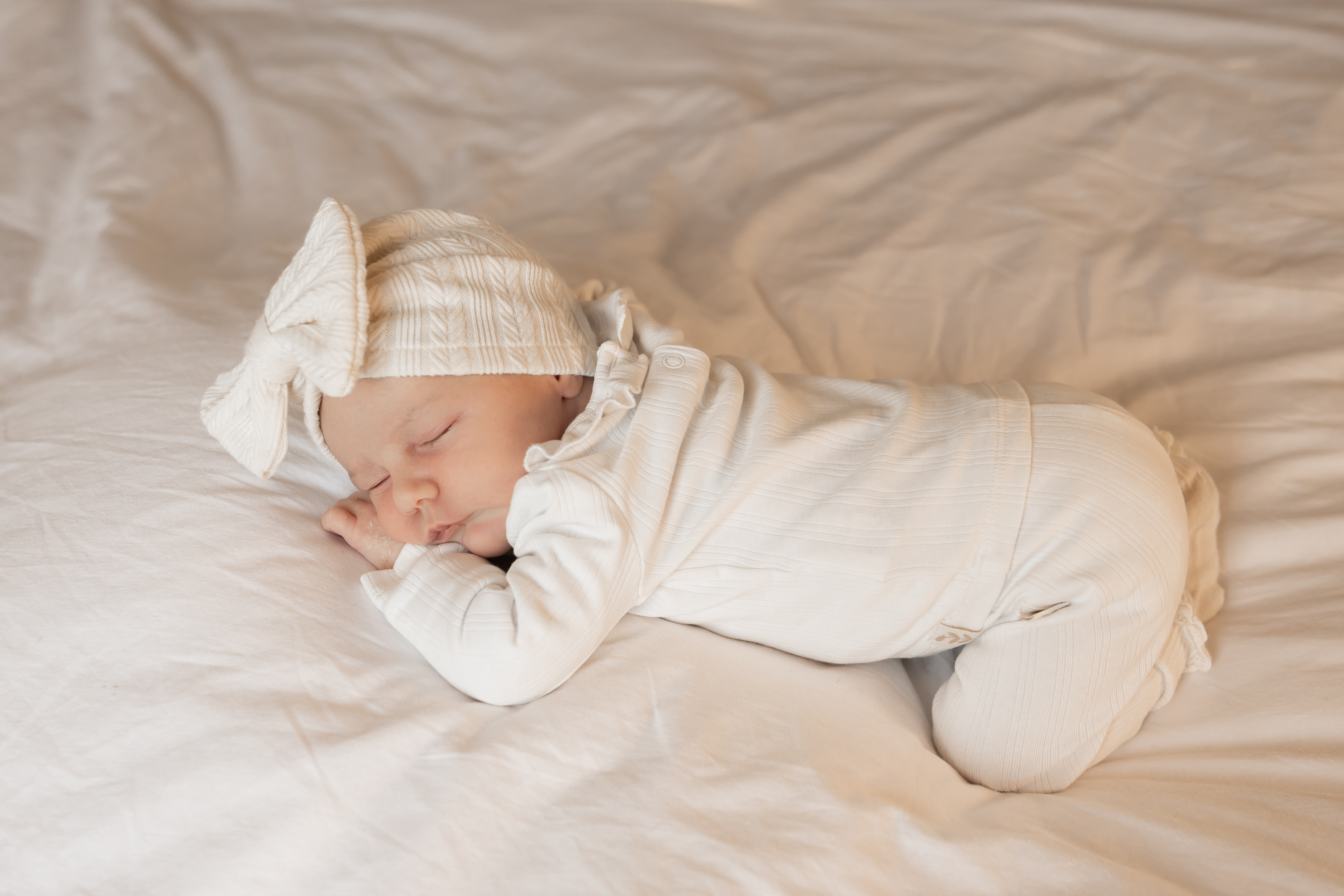 Een newborn fotoshoot vindt plaats binnen twee tot vier weken na de geboorte. De tijd spreken we af ongeveer 1 a 2 dagen voor aanvang. Het liefst fotografeer ik baby’s in de ochtend na de eerste flesvoeding.